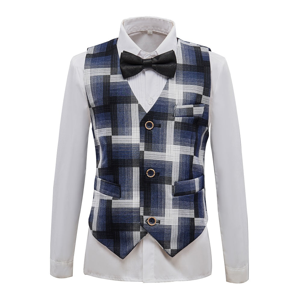 Package includes:Jacket + Pants + Vest+ Shirt + Tie, 5-Piece Suit.