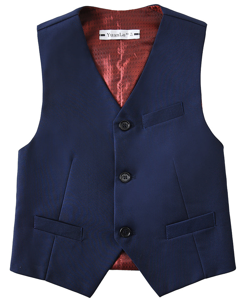 Blue 4 Piece Boys' Formal Suit Set with Vest Pants Dress Shirt and Tie BS37