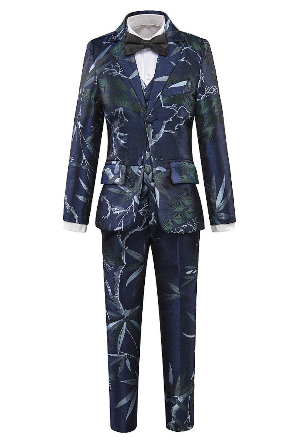 Package includes:Jacket + Pants + Vest+ Shirt + Tie, 5-Piece Suit.