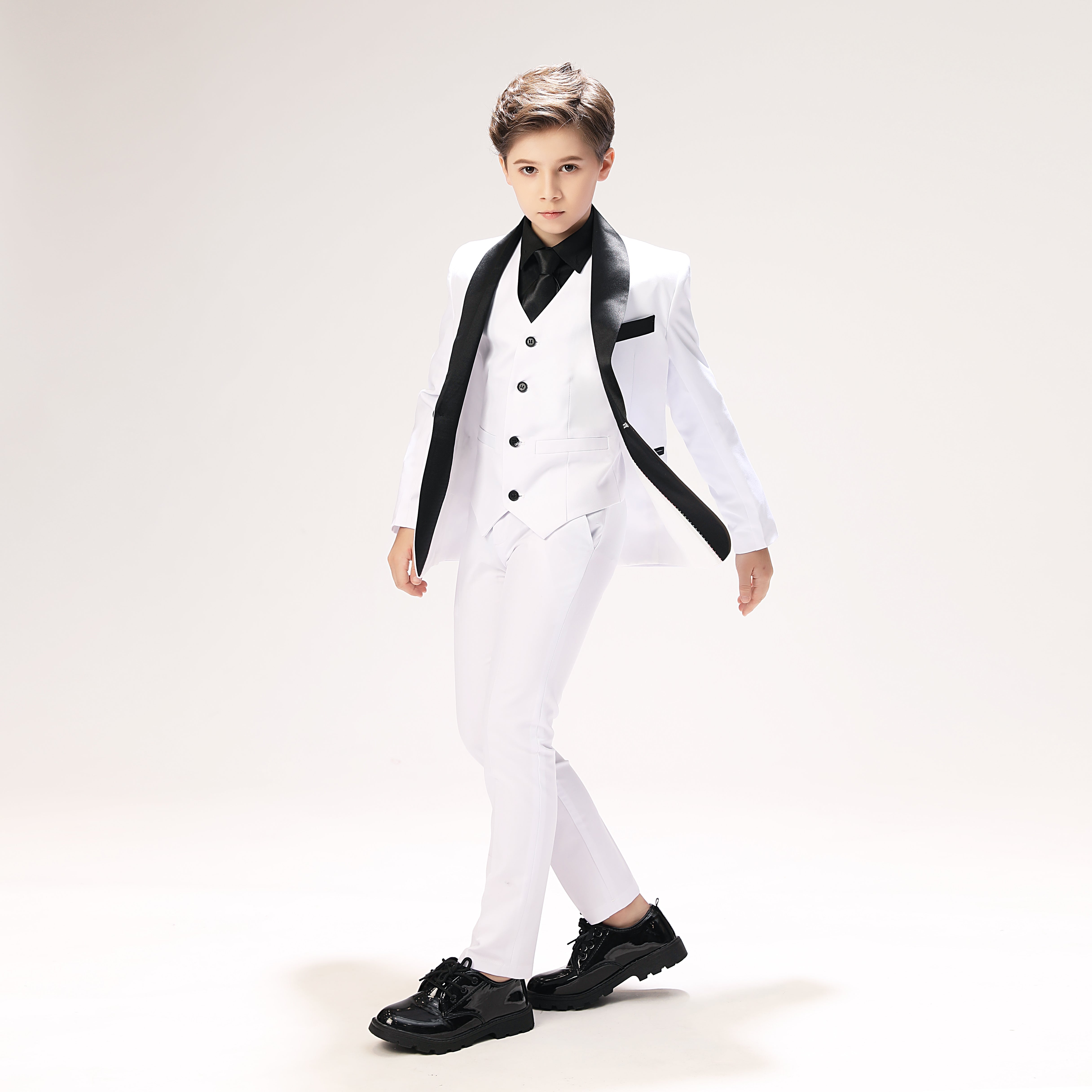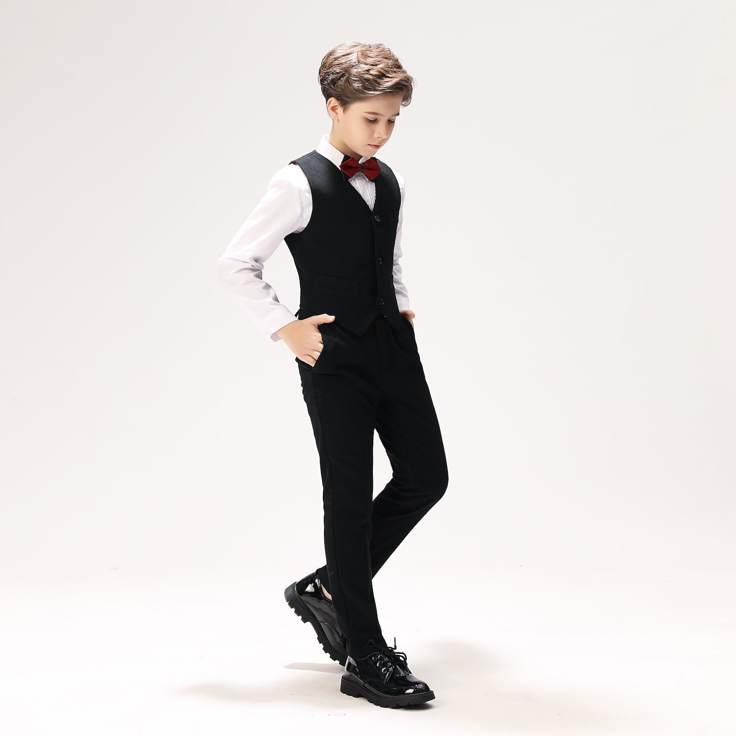 Package includes:Jacket + Pants + Vest+ Shirt + Tie, 5-Piece Suit.
