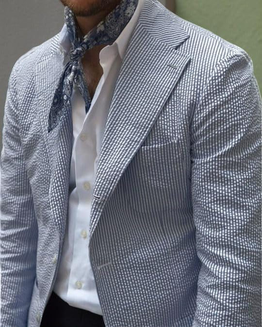 · [MATERIAL]: Seersucker, a classic American fabric, seersucker is great for summer and other warm-weather occasions. Whimsical, fun, and uniquely textured, the coolness and distinctive appearance of seersucker have made it a popular warm- and hot-weather option for stylish gentlemen across the globe, and it is regularly used to make jackets.