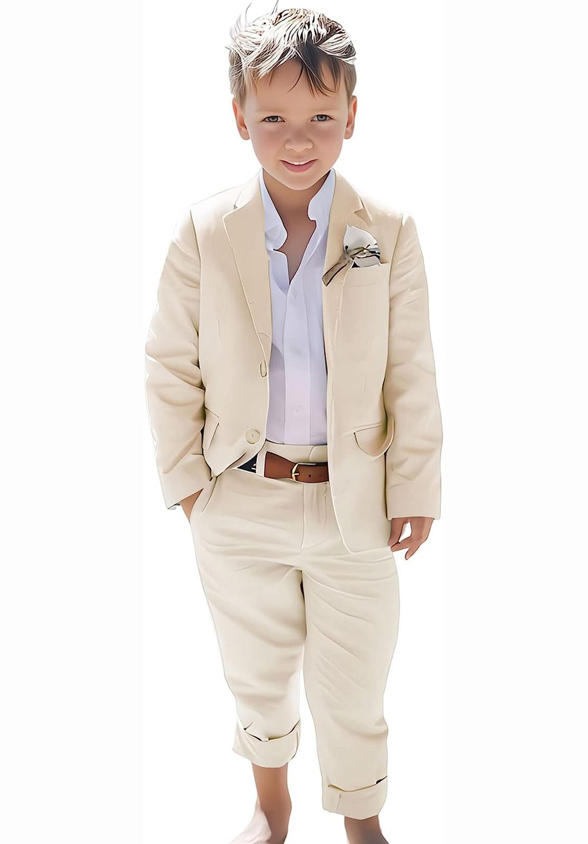 · Package:2 Pieces Boys linen Suit Set,including one pieces of boy tuxedo suit jacket ,and one pair of pants.