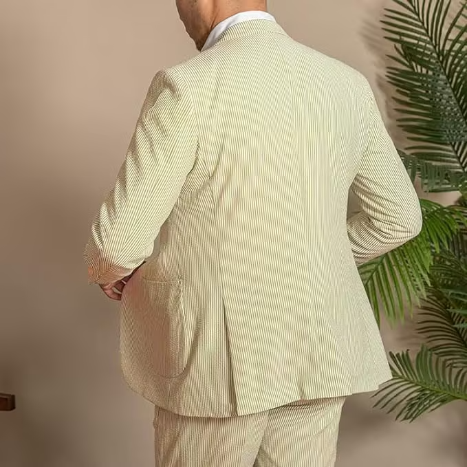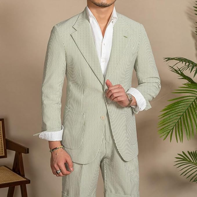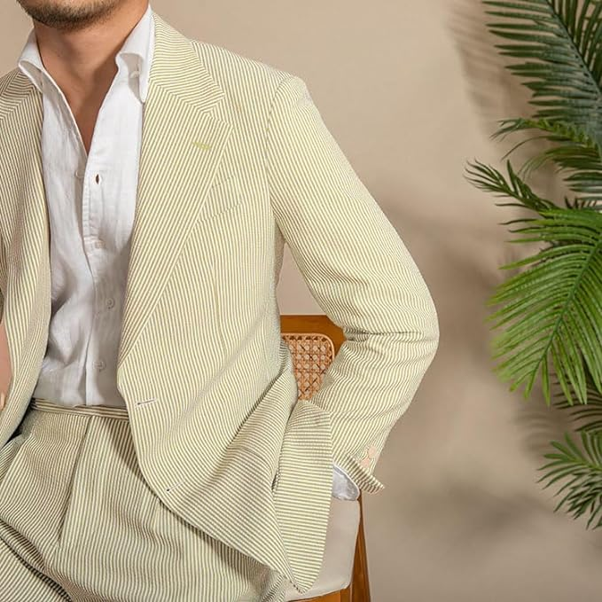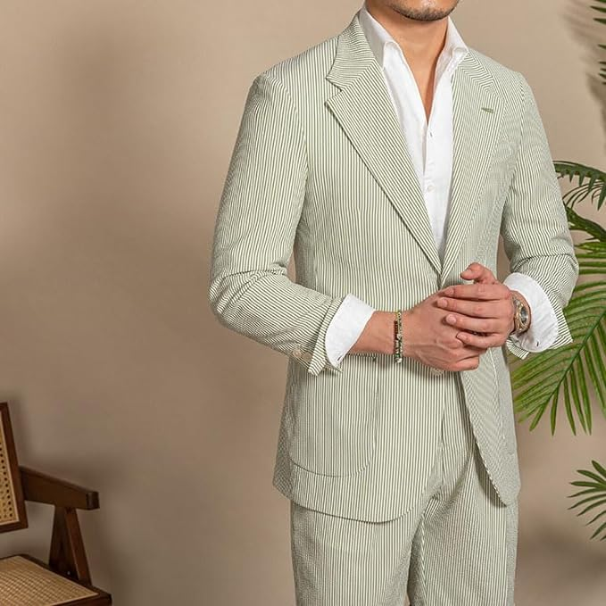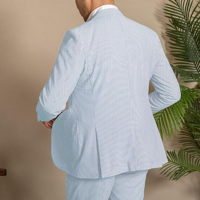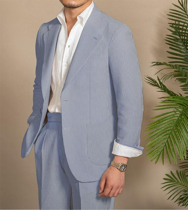 · [Warm Notice]: To ensure your better fit,please be sure to refer to our SIZE CHART, especially the shoulder , CHEST, waist, etc. Please check the SIZE CHART before buying. If you can not find the right size in the size chart, please choose"personalized size" and provide your body measurements: chest; belly; waist; hips; shoulder; sleeve; blazer length; pants length; height and weight. We will customize this seersucker suit for you.