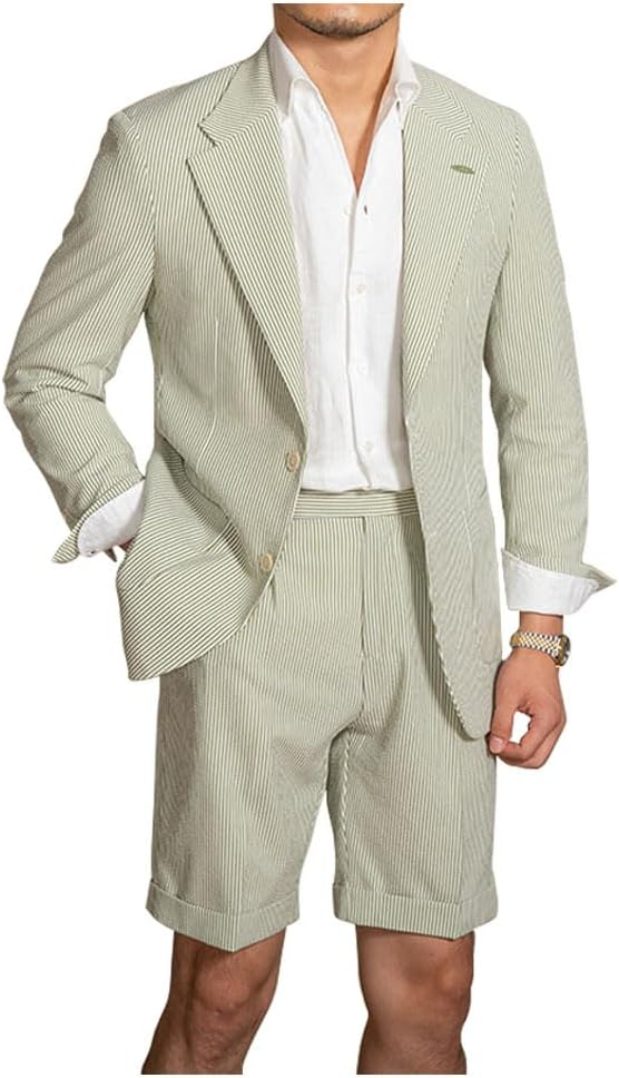 · [JACKET & Shorts]: Light shoulder padding gives it just enough structure. Fashion pockets, two-button, notched lapel and side vent make it gentally. Regular, classic fit. The flexible cuff design can be rolled up freely, giving people a relaxed feeling. The shorts have an adjustable elastic waistband, which enhances comfort when wearing. All shorts come with lining.