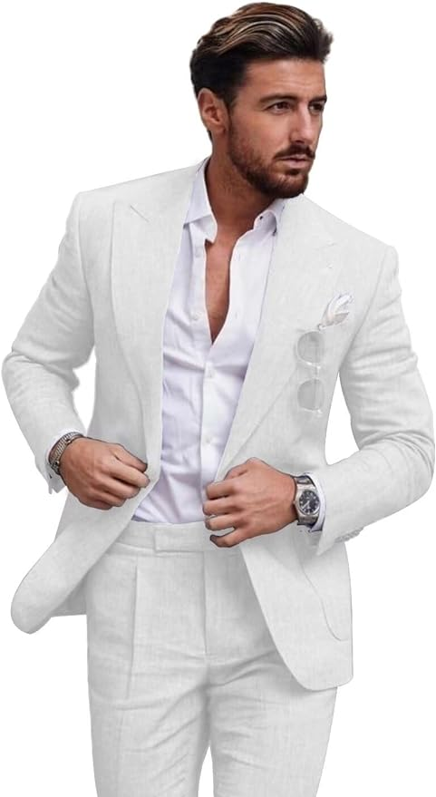 Fabric type 50% Linen, 30% Cotton, 20% Viscose;Linen Suit for Men