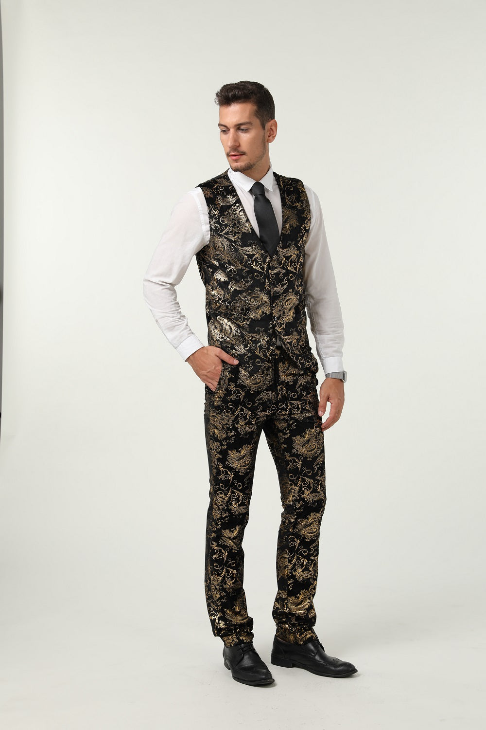 Package includes:Jacket+Pants+vest, 3-Piece Suit.