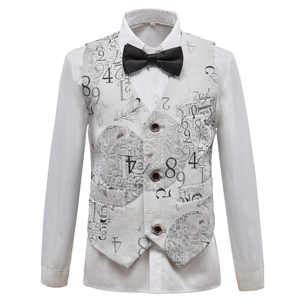 Package includes:Jacket + Pants + Vest+ Shirt + Tie, 5-Piece Suit.
