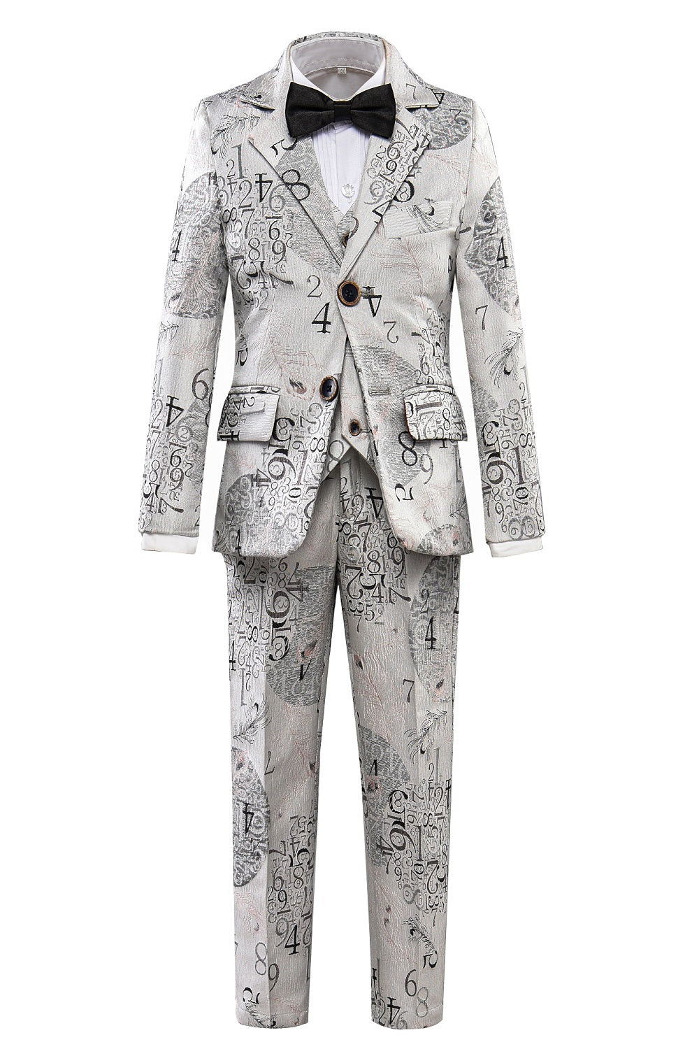 Package includes:Jacket + Pants + Vest+ Shirt + Tie, 5-Piece Suit. Please be aware that colors might look slightly different in person due to camera quality and monitor settings. Some tie and button can not 100% same the picture ,if not accept, please be careful to buy.